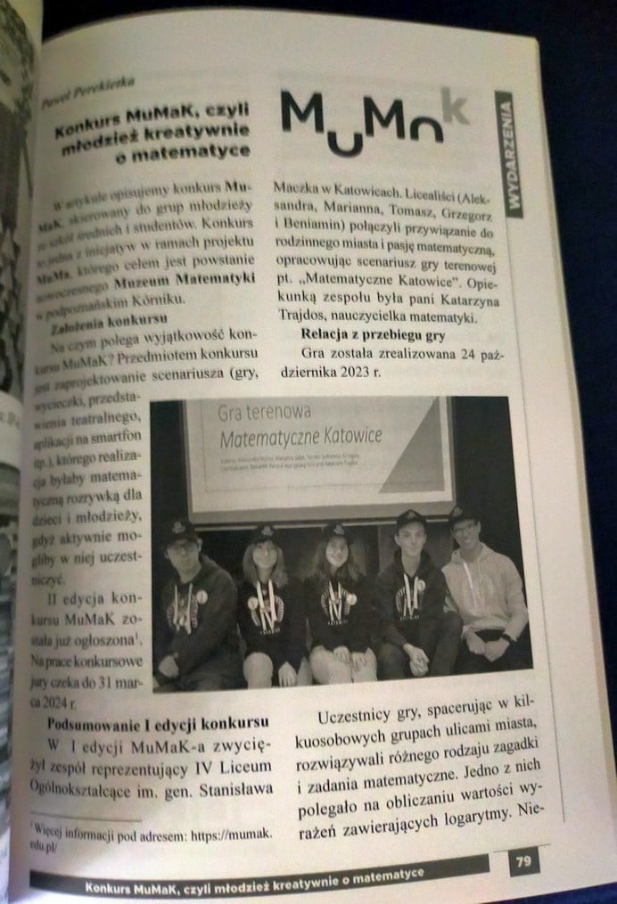 Artykuł przedstawiający konkurs MuMaK ukazał się w opolskim czasopiśmie edukacyjnym.