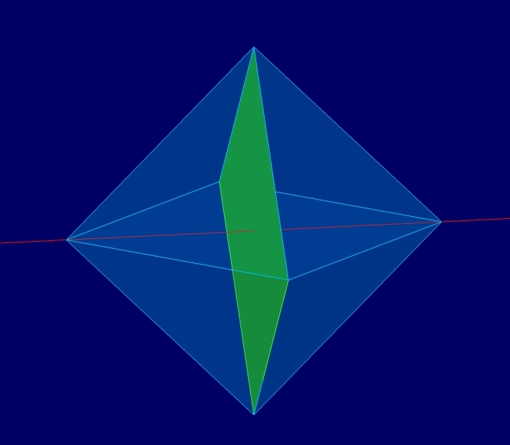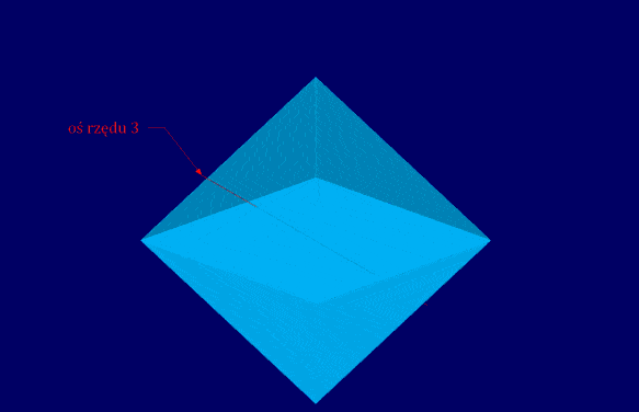 Tak samo jest z ośmiościanem – wszystkie płaszczyzny symetrii to te, które są prostopadłe do osi rzędu 2 lub do osi rzędu 4 i przechodzą przez środek bryły. A ośmiościan ma jeszcze osie rzędu 3.
