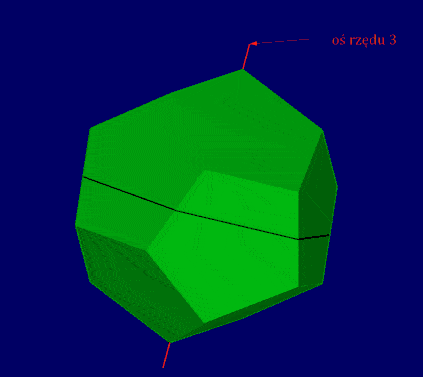 Zauważmy, że płaszczyzny przechodzące przez środek geometryczny sześcianu prostopadłe do osi rzędu 2 i do osi rzędu 4 są płaszczyznami symetrii bryły. I to wszystkie płaszczyzny symetrii sześcianu. A przecież sześcian ma jeszcze osie rzędu 3.